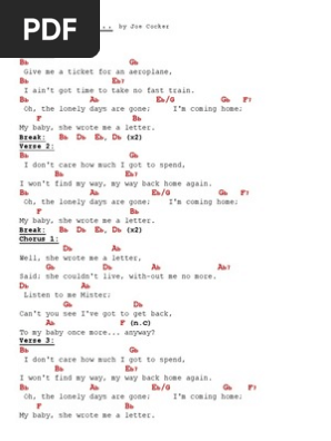 CHORDS B7 C D Em G. 1 measure each chord except Em which is a single strum Em7 C7 D Em. Have fun D Intro Em C D Verse 1 EmSend me a ticket for an aeropClaneD EmAint got time to take the fast tA7rain EmLonely dDays are gone CIm comin home B7 my baby wrote me a letter Verse 2 EmI dont care how much I g. Em C Give me a ticket for an aeroplane D Em Aint got time to take a fast train. Got to get back to baby again. Repeat Verse 1 End. Im a goin home A Dm My baby you wrote me a letter Dm Bb I dont care how much money I gotta spend C G I got to get back to my baby again Dm Bb Lonely days are gone Im a goin home A Dm My baby you wrote me a letter F. The Letter Chords Guitar Tab Lyrics - Haley Reinhart. One time each chord.