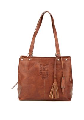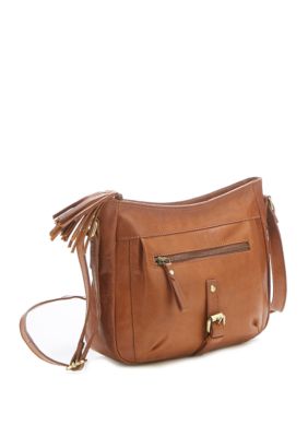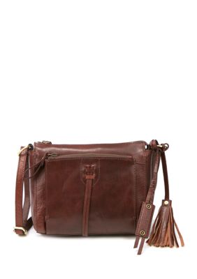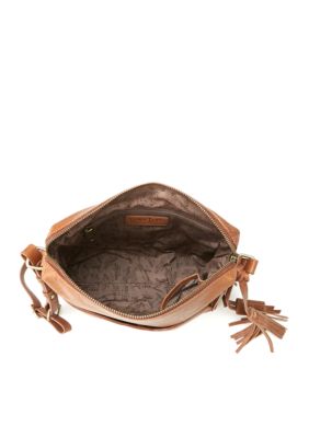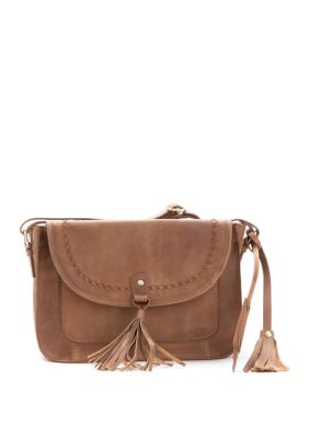 This bag features tassel details with interior and exterior pockets making your cool style organized and accessible. Diba True Brown Leather Crossbody Messenger Handbag Purse Slightly Distressed.